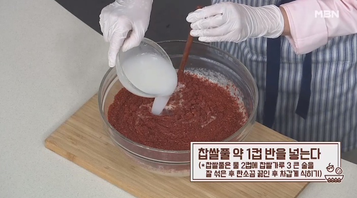 (12) 찹쌀풀 약 1컵 반 넣는다.