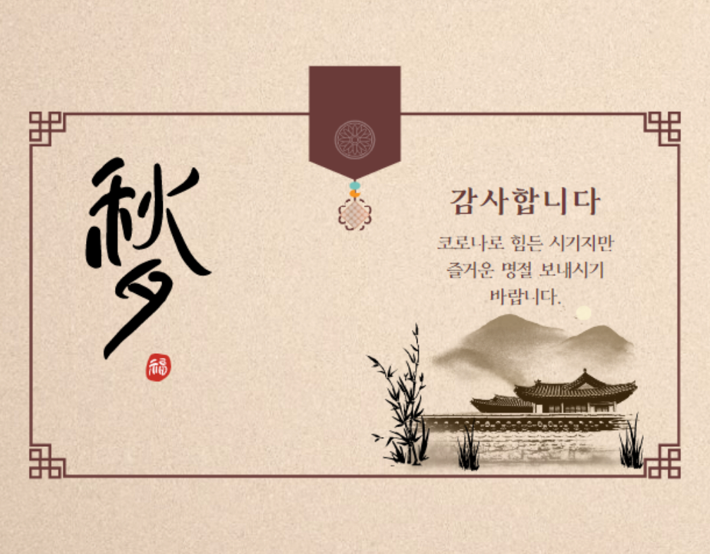 평소의 배풀어주신 도움에 감사드리며 풍요롭고 행복한 한가위 보내시기를 기원합니다.
