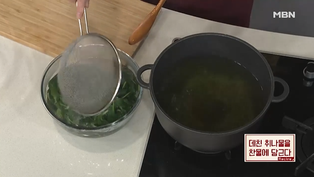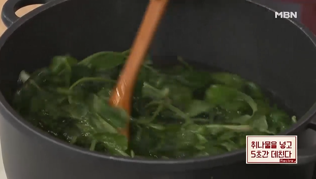 (2) 취나물을 넣고 5초간 데친다.