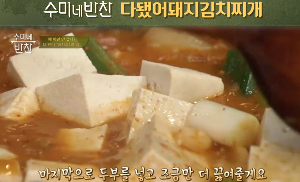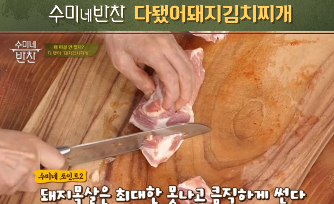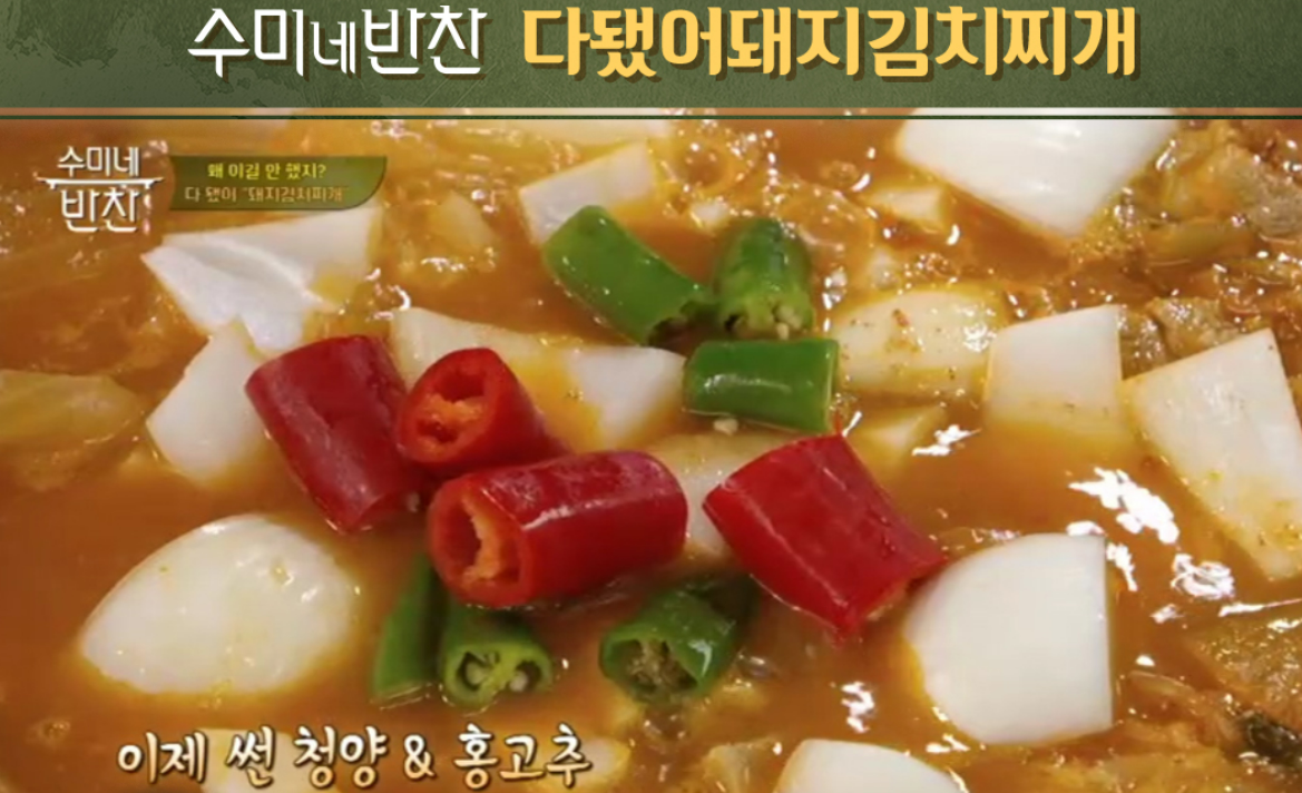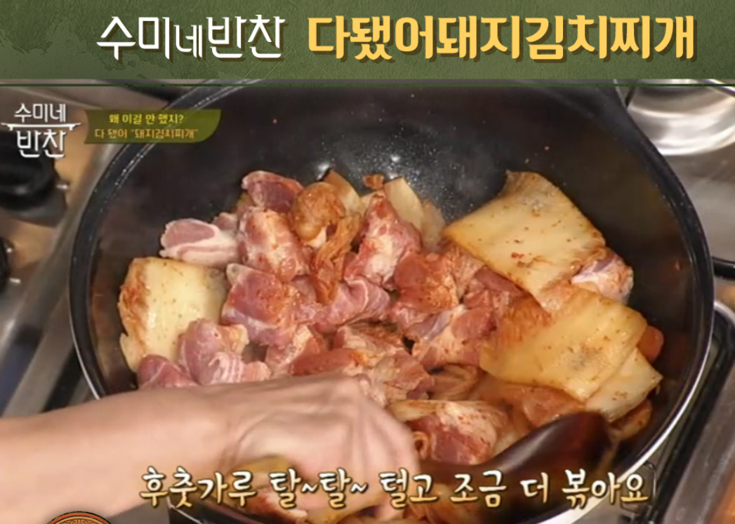 수미네 반찬에서 공개된 돼지고기 김치찌개 황금레시피 요약 포스팅입니다.