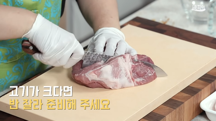(4) 고기가 크다면 반 잘라서 준비한다.