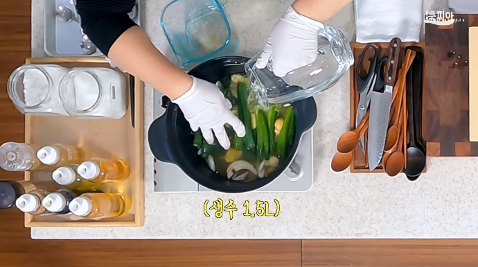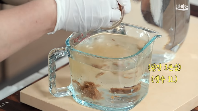 (3) 된장 푼 물(된장 1큰술 + 생수 1L)과 물 1.5L를 부어 끓인다.