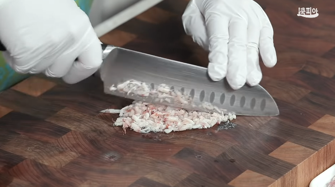 (5) 새우젓을 곱게 다져서 볼에 담고 생수 3큰술을 넣는다.