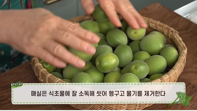 (1) 매실을 식초물에 잘 소독해 씻어 헹구고 물기를 제거한다.