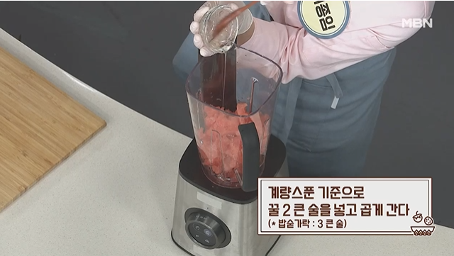 (3) 꿀 2큰술을 넣고 곱게 간다.